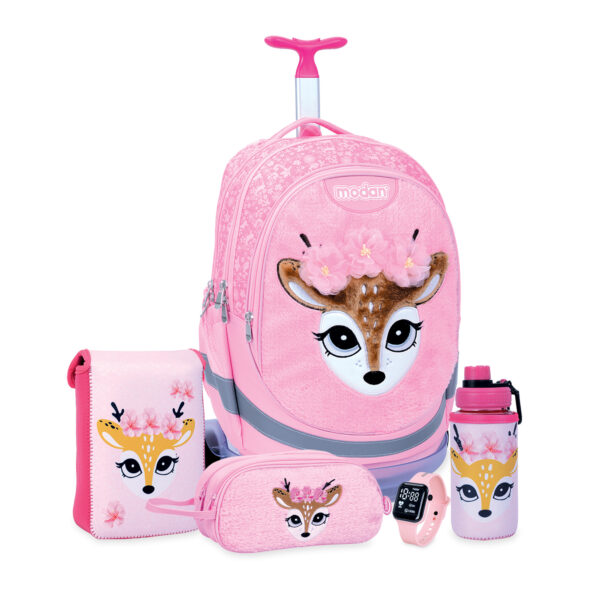 מארז מוצרים מנצח שכל ילד שעולה לכיתה א' ישמח לקבל. כל מוצרי המארז מעוצבים בעיצוב אחיד וארוזים באריזת מתנה מרשימה. מה מכיל המארז המנצח? תיק אורטופדי מודן air flex bag+ כיסוי נגד גשם מתנה עגלת טרולי איכותית קלמר שני תאים ממותג בעיצוב תואם לעיצוב התיק קופסת אוכל בכיסוי תרמי תואם לעיצוב התיק בקבוק שתייה בכיסוי תרמי תואם לעיצוב התיק שעון דיגיטלי מתנה תיק אורטופדי משולב עם עגלת טרולי תיק אורטופדי חדיש משולב עם עגלת נשיאה הניתנת להסרה. מאפשרת לתלמיד לשאת את התיק בשלושה אופנים: 1. גרירה על גבי העגלה ייעודית עם גלגלי סיליקון עמידים 2. נשיאה על הגב כאשר העגלה מחוברת לתיק 3. נשיאה על גבי הגב של התיק האורטופדי לבדו לאחר הסרה פשוטה ומהירה של מערכת העגלה. מערכת Air-flex BAG היא פיתוח ייחודי של חברת מודן והיא משלבת בגב התיק כריות לתמיכה מתקדמת שפותחו במיוחד למטרה זו. מערכת התמיכה, למעשה מפחיתה את רמת העומס על גב הילד הנוצרת כתוצאה ממשקל תכולת התיק ותנועת הילד בהליכה. עגלת הנשיאה עם תחתית שקופה מפלסטיק קשיח, מוט נשיאה טלסקופי מתכוונן המאפשר התאמה לגובה הילד מאלומיניום קל משקל. וגלגלי סיליקון איכותיים. העגלה ניתנת לפירוק. קלמר שני תאים קלמר מחולק לשני תאים עם שני רוכסנים נפרדים וחזית מעוצבת. מיוצר מבדים חזקים ורוכסנים איכותיים וממגוון עיצובים. קופסת אוכל עם כיסוי תרמי קופסת אוכל בעלת 3 תאים ומכסה עם שני מנגנוני נעילה כיסוי תרמי השומר על בידוד הקופסה הפנימית מתאימה להקפאה, חימום במיקרוגל ולשימוש במדיח כלים בטוח לשימוש ללא BPA בקבוק שתייה עם כיסוי תרמי בקבוק לשתייה קרה בנפח 500 מ"ל פקק מתברג עם מנגנון לפתיחה נוחה כיסוי תרמי מבודד ושומר על טמפרטורת התכולה בטוח לשימוש ללא BPA