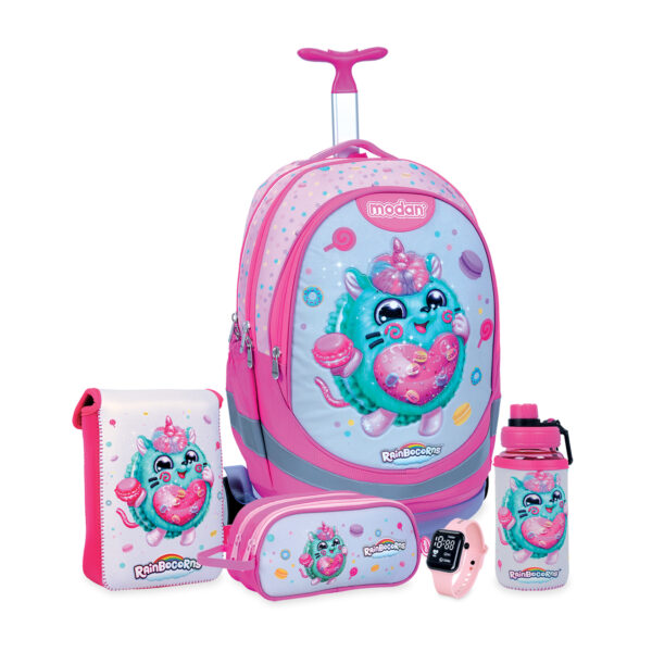 מארז מוצרים מנצח שכל ילד שעולה לכיתה א' ישמח לקבל. כל מוצרי המארז מעוצבים בעיצוב אחיד וארוזים באריזת מתנה מרשימה. מה מכיל המארז המנצח? תיק אורטופדי מודן air flex bag+ כיסוי נגד גשם מתנה עגלת טרולי איכותית קלמר שני תאים ממותג בעיצוב תואם לעיצוב התיק קופסת אוכל בכיסוי תרמי תואם לעיצוב התיק בקבוק שתייה בכיסוי תרמי תואם לעיצוב התיק שעון דיגיטלי מתנה תיק אורטופדי משולב עם עגלת טרולי תיק אורטופדי חדיש משולב עם עגלת נשיאה הניתנת להסרה. מאפשרת לתלמיד לשאת את התיק בשלושה אופנים: 1. גרירה על גבי העגלה ייעודית עם גלגלי סיליקון עמידים 2. נשיאה על הגב כאשר העגלה מחוברת לתיק 3. נשיאה על גבי הגב של התיק האורטופדי לבדו לאחר הסרה פשוטה ומהירה של מערכת העגלה. מערכת Air-flex BAG היא פיתוח ייחודי של חברת מודן והיא משלבת בגב התיק כריות לתמיכה מתקדמת שפותחו במיוחד למטרה זו. מערכת התמיכה, למעשה מפחיתה את רמת העומס על גב הילד הנוצרת כתוצאה ממשקל תכולת התיק ותנועת הילד בהליכה. עגלת הנשיאה עם תחתית שקופה מפלסטיק קשיח, מוט נשיאה טלסקופי מתכוונן המאפשר התאמה לגובה הילד מאלומיניום קל משקל. וגלגלי סיליקון איכותיים. העגלה ניתנת לפירוק. קלמר שני תאים קלמר מחולק לשני תאים עם שני רוכסנים נפרדים וחזית מעוצבת. מיוצר מבדים חזקים ורוכסנים איכותיים וממגוון עיצובים. קופסת אוכל עם כיסוי תרמי קופסת אוכל בעלת 3 תאים ומכסה עם שני מנגנוני נעילה כיסוי תרמי השומר על בידוד הקופסה הפנימית מתאימה להקפאה, חימום במיקרוגל ולשימוש במדיח כלים בטוח לשימוש ללא BPA בקבוק שתייה עם כיסוי תרמי בקבוק לשתייה קרה בנפח 500 מ"ל פקק מתברג עם מנגנון לפתיחה נוחה כיסוי תרמי מבודד ושומר על טמפרטורת התכולה בטוח לשימוש ללא BPA