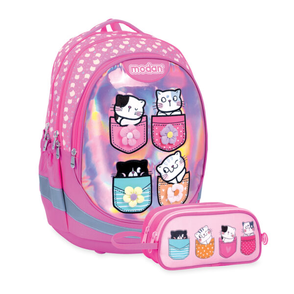 תיק אורטופדי מבית מודן עם מערכת Air Flex Bag – מערכת אורטופדית יחודית למודן, עם כרית לתמיכה מיטבית בגב תחתון וכותפות תלת שכבתיות נוחות במיוחד. מערכת Air-flex BAG היא פיתוח ייחודי של חברת מודן ולמעשה מפחיתה את רמת העומס על גב הילד הנוצרת כתוצאה ממשקל תכולת התיק ותנועת הילד בהליכה. החלק האחורי של התיק כולל דפנות כפולות, המאפשרות שילוב עגלת הטרולי בתוך התיק והפיכתו לתיק Smart Trolley. כך יכולים התלמידים לבחור באיזה ימים לשאת את התיק על הגב ובאילו ימים לצאת עם התיק במצב של טרולי על גלגלים. התיק מגיע עם קלמר 2 תאים תואם לעיצוב התיק האורטופדי תכונות התיק מערכת תמיכה אורטופדית לגב הנותנת תמיכה מלאה לגב הילד בשלושה אזורים חשובים בגב הילד : כתפיים, שכמות וגב תחתון. כתפיות תלת שכבתיות מרופדות העשויות מחומר מאוורר וניתנות להתאמה לגובה התיק על גב הילד ולהתאמת מרחק התיק מהגב. תחתית קשיחה בעלת 4 רגליות פלסטיק המאפשרת את העמדת התיק על הרצפה בצורה יציבה ותורמת לחלוקת משקל טובה. חלוקה ל-3 תאים מרווחים. התא הקדמי עשוי מחומר עם תכונות בידוד טרמי ומתאים לאחסון אוכל. ובנוסף 2 כיסים בצידי התיק לאחסון בקבוקי שתיה. התיק עשוי מבד דוחה מים שמגן על תכולת התיק מפני חדירת גשם ומגיע עם כיסוי גם נוסף- מתנה מחזירי אור על גבי התיק לבטיחות התלמיד/ה עפ"י התקן הישראלי. התיק מיוצר מבד איכותי בצפיפות גבוהה, ציפוי UV פנימי ורוכסנים איכותיים המאפשרים פתיחת התאים בקלות. גב התיק האורטופדי בעל דופן כפולה המאפשר חיבור עגלת נשיאה והפיכת התיק האורטופדי לתיק טרולי . משקל התיק: כ- 960 גר'
