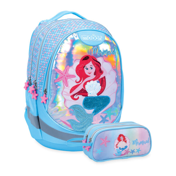 תיק אורטופדי מבית מודן עם מערכת Air Flex Bag – מערכת אורטופדית יחודית למודן, עם כרית לתמיכה מיטבית בגב תחתון וכותפות תלת שכבתיות נוחות במיוחד. מערכת Air-flex BAG היא פיתוח ייחודי של חברת מודן ולמעשה מפחיתה את רמת העומס על גב הילד הנוצרת כתוצאה ממשקל תכולת התיק ותנועת הילד בהליכה. החלק האחורי של התיק כולל דפנות כפולות, המאפשרות שילוב עגלת הטרולי בתוך התיק והפיכתו לתיק Smart Trolley. כך יכולים התלמידים לבחור באיזה ימים לשאת את התיק על הגב ובאילו ימים לצאת עם התיק במצב של טרולי על גלגלים. התיק מגיע עם קלמר 2 תאים תואם לעיצוב התיק האורטופדי תכונות התיק מערכת תמיכה אורטופדית לגב הנותנת תמיכה מלאה לגב הילד בשלושה אזורים חשובים בגב הילד : כתפיים, שכמות וגב תחתון. כתפיות תלת שכבתיות מרופדות העשויות מחומר מאוורר וניתנות להתאמה לגובה התיק על גב הילד ולהתאמת מרחק התיק מהגב. תחתית קשיחה בעלת 4 רגליות פלסטיק המאפשרת את העמדת התיק על הרצפה בצורה יציבה ותורמת לחלוקת משקל טובה. חלוקה ל-3 תאים מרווחים. התא הקדמי עשוי מחומר עם תכונות בידוד טרמי ומתאים לאחסון אוכל. ובנוסף 2 כיסים בצידי התיק לאחסון בקבוקי שתיה. התיק עשוי מבד דוחה מים שמגן על תכולת התיק מפני חדירת גשם ומגיע עם כיסוי גם נוסף- מתנה מחזירי אור על גבי התיק לבטיחות התלמיד/ה עפ"י התקן הישראלי. התיק מיוצר מבד איכותי בצפיפות גבוהה, ציפוי UV פנימי ורוכסנים איכותיים המאפשרים פתיחת התאים בקלות. גב התיק האורטופדי בעל דופן כפולה המאפשר חיבור עגלת נשיאה והפיכת התיק האורטופדי לתיק טרולי . משקל התיק: כ- 960 גר'