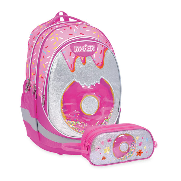 תיק אורטופדי מבית מודן עם מערכת Air Flex Bag – מערכת אורטופדית יחודית למודן, עם כרית לתמיכה מיטבית בגב תחתון וכותפות תלת שכבתיות נוחות במיוחד. מערכת Air-flex BAG היא פיתוח ייחודי של חברת מודן ולמעשה מפחיתה את רמת העומס על גב הילד הנוצרת כתוצאה ממשקל תכולת התיק ותנועת הילד בהליכה. החלק האחורי של התיק כולל דפנות כפולות, המאפשרות שילוב עגלת הטרולי בתוך התיק והפיכתו לתיק Smart Trolley. כך יכולים התלמידים לבחור באיזה ימים לשאת את התיק על הגב ובאילו ימים לצאת עם התיק במצב של טרולי על גלגלים. התיק מגיע עם קלמר 2 תאים תואם לעיצוב התיק האורטופדי תכונות התיק מערכת תמיכה אורטופדית לגב הנותנת תמיכה מלאה לגב הילד בשלושה אזורים חשובים בגב הילד : כתפיים, שכמות וגב תחתון. כתפיות תלת שכבתיות מרופדות העשויות מחומר מאוורר וניתנות להתאמה לגובה התיק על גב הילד ולהתאמת מרחק התיק מהגב. תחתית קשיחה בעלת 4 רגליות פלסטיק המאפשרת את העמדת התיק על הרצפה בצורה יציבה ותורמת לחלוקת משקל טובה. חלוקה ל-3 תאים מרווחים. התא הקדמי עשוי מחומר עם תכונות בידוד טרמי ומתאים לאחסון אוכל. ובנוסף 2 כיסים בצידי התיק לאחסון בקבוקי שתיה. התיק עשוי מבד דוחה מים שמגן על תכולת התיק מפני חדירת גשם ומגיע עם כיסוי גם נוסף- מתנה מחזירי אור על גבי התיק לבטיחות התלמיד/ה עפ"י התקן הישראלי. התיק מיוצר מבד איכותי בצפיפות גבוהה, ציפוי UV פנימי ורוכסנים איכותיים המאפשרים פתיחת התאים בקלות. גב התיק האורטופדי בעל דופן כפולה המאפשר חיבור עגלת נשיאה והפיכת התיק האורטופדי לתיק טרולי . משקל התיק: כ- 960 גר'