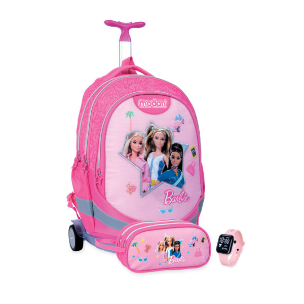 מארז מתנה באריזה מהודרת שכל ילד שעולה לכיתה א' ישמח לקבל. כל מוצרי המארז מעוצבים בעיצוב אחיד וארוזים באריזת מתנה מרשימה. מה מכיל המארז המנצח? תיק אורטופדי מודן air flex bag+ כיסוי נגד גשם מתנה עגלת טרולי איכותית קלמר שני תאים ממותג בעיצוב תואם לתיק שעון דיגיטלי מתנה תיק מודן סמארט טרולי SMART TROLY by modan תיק אורטופדי עם מערכת Air Flex Bag הייחודית שפותחה במודן משולב עם עגלת נשיאה הניתנת להסרה. מאפשרת לתלמיד לשאת את התיק בשלושה אופנים: גרירה על גבי העגלה ייעודית עם גלגלי סיליקון עמידים נשיאה על הגב כאשר העגלה מחוברת לתיק נשיאה של התיק האורטופדי לאחר הסרה פשוטה ומהירה של מערכת העגלה. מערכת Air-flex BAG היא פיתוח ייחודי של חברת מודן והיא משלבת בגב התיק כריות תמיכה מתקדמת בגב הילד, שפותחו במיוחד למטרה זו. מערכת התמיכה, למעשה מפחיתה את רמת העומס על גב הילד הנוצרת כתוצאה ממשקל תכולת התיק ותנועת הילד בהליכה. עגלת הנשיאה מורכבת מתחתית שקופה מפלסטיק קשיח, מוט נשיאה טלסקופי מאלומיניום קל משקל המתכוונן ומאפשר התאמה לגובה הילד וגלגלי סיליקון איכותיים. העגלה ניתנת לפירוק פירוט על התיק: תיק אורטופדי איכותי לבית הספר עם מערכת תמיכה אורטופדית לגב הילד הנותנת תמיכה מלאה לגב הילד בשלושה אזורים חשובים: כתפיים, שכמות וגב תחתון. כתפיות מרופדות תלת שכבתיות העשויות מחומר מאוורר הניתנות להתאמה גם לגובה התיק על גב הילד וגם להתאמת מרחק התיק מהגב. הכתפיות נתפרות בתפירה כפולה המבטיחה את עמידותן בנשיאת התיק תחתית קשיחה המאפשרת את העמדת התיק על הרצפה בצורה יציבה ותורמת לתמיכה תחתונה ולחלוקת משקל טובה. חלוקה ל-3 תאים מרווחים. התא הקדמי עשוי מחומר עם תכונות בידוד טרמי ולכן מתאים לאחסון אוכל. ובנוסף 2 כיסים בצידי התיק לאחסון בקבוקי שתיה. התיק עשוי מבד דוחה מים שמגן מפני חדירת גשם ובנוסף כיסוי נגד גשם מתנה מחזירי אור על גבי התיק לבטיחות התלמיד/ה עפ"י התקן הישראלי. התיק מיוצר מבד איכותי בצפיפות גבוהה (D600) ורוכסנים איכותיים המאפשרים פתיחת וסגירת התאים בקלות.