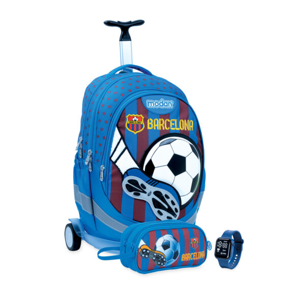 מארז מתנה באריזה מהודרת שכל ילד שעולה לכיתה א' ישמח לקבל. כל מוצרי המארז מעוצבים בעיצוב אחיד וארוזים באריזת מתנה מרשימה. מה מכיל המארז המנצח? תיק אורטופדי מודן air flex bag+ כיסוי נגד גשם מתנה עגלת טרולי איכותית קלמר שני תאים ממותג בעיצוב תואם לתיק שעון דיגיטלי מתנה תיק מודן סמארט טרולי SMART TROLY by modan תיק אורטופדי עם מערכת Air Flex Bag הייחודית שפותחה במודן משולב עם עגלת נשיאה הניתנת להסרה. מאפשרת לתלמיד לשאת את התיק בשלושה אופנים: גרירה על גבי העגלה ייעודית עם גלגלי סיליקון עמידים נשיאה על הגב כאשר העגלה מחוברת לתיק נשיאה של התיק האורטופדי לאחר הסרה פשוטה ומהירה של מערכת העגלה. מערכת Air-flex BAG היא פיתוח ייחודי של חברת מודן והיא משלבת בגב התיק כריות תמיכה מתקדמת בגב הילד, שפותחו במיוחד למטרה זו. מערכת התמיכה, למעשה מפחיתה את רמת העומס על גב הילד הנוצרת כתוצאה ממשקל תכולת התיק ותנועת הילד בהליכה. עגלת הנשיאה מורכבת מתחתית שקופה מפלסטיק קשיח, מוט נשיאה טלסקופי מאלומיניום קל משקל המתכוונן ומאפשר התאמה לגובה הילד וגלגלי סיליקון איכותיים. העגלה ניתנת לפירוק פירוט על התיק: תיק אורטופדי איכותי לבית הספר עם מערכת תמיכה אורטופדית לגב הילד הנותנת תמיכה מלאה לגב הילד בשלושה אזורים חשובים: כתפיים, שכמות וגב תחתון. כתפיות מרופדות תלת שכבתיות העשויות מחומר מאוורר הניתנות להתאמה גם לגובה התיק על גב הילד וגם להתאמת מרחק התיק מהגב. הכתפיות נתפרות בתפירה כפולה המבטיחה את עמידותן בנשיאת התיק תחתית קשיחה המאפשרת את העמדת התיק על הרצפה בצורה יציבה ותורמת לתמיכה תחתונה ולחלוקת משקל טובה. חלוקה ל-3 תאים מרווחים. התא הקדמי עשוי מחומר עם תכונות בידוד טרמי ולכן מתאים לאחסון אוכל. ובנוסף 2 כיסים בצידי התיק לאחסון בקבוקי שתיה. התיק עשוי מבד דוחה מים שמגן מפני חדירת גשם ובנוסף כיסוי נגד גשם מתנה מחזירי אור על גבי התיק לבטיחות התלמיד/ה עפ"י התקן הישראלי. התיק מיוצר מבד איכותי בצפיפות גבוהה (D600) ורוכסנים איכותיים המאפשרים פתיחת וסגירת התאים בקלות.