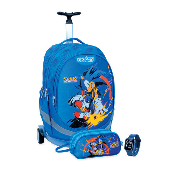 מארז מתנה באריזה מהודרת שכל ילד שעולה לכיתה א' ישמח לקבל. כל מוצרי המארז מעוצבים בעיצוב אחיד וארוזים באריזת מתנה מרשימה. מה מכיל המארז המנצח? תיק אורטופדי מודן air flex bag+ כיסוי נגד גשם מתנה עגלת טרולי איכותית קלמר שני תאים ממותג בעיצוב תואם לתיק שעון דיגיטלי מתנה תיק מודן סמארט טרולי SMART TROLY by modan תיק אורטופדי עם מערכת Air Flex Bag הייחודית שפותחה במודן משולב עם עגלת נשיאה הניתנת להסרה. מאפשרת לתלמיד לשאת את התיק בשלושה אופנים: גרירה על גבי העגלה ייעודית עם גלגלי סיליקון עמידים נשיאה על הגב כאשר העגלה מחוברת לתיק נשיאה של התיק האורטופדי לאחר הסרה פשוטה ומהירה של מערכת העגלה. מערכת Air-flex BAG היא פיתוח ייחודי של חברת מודן והיא משלבת בגב התיק כריות תמיכה מתקדמת בגב הילד, שפותחו במיוחד למטרה זו. מערכת התמיכה, למעשה מפחיתה את רמת העומס על גב הילד הנוצרת כתוצאה ממשקל תכולת התיק ותנועת הילד בהליכה. עגלת הנשיאה מורכבת מתחתית שקופה מפלסטיק קשיח, מוט נשיאה טלסקופי מאלומיניום קל משקל המתכוונן ומאפשר התאמה לגובה הילד וגלגלי סיליקון איכותיים. העגלה ניתנת לפירוק פירוט על התיק: תיק אורטופדי איכותי לבית הספר עם מערכת תמיכה אורטופדית לגב הילד הנותנת תמיכה מלאה לגב הילד בשלושה אזורים חשובים: כתפיים, שכמות וגב תחתון. כתפיות מרופדות תלת שכבתיות העשויות מחומר מאוורר הניתנות להתאמה גם לגובה התיק על גב הילד וגם להתאמת מרחק התיק מהגב. הכתפיות נתפרות בתפירה כפולה המבטיחה את עמידותן בנשיאת התיק תחתית קשיחה המאפשרת את העמדת התיק על הרצפה בצורה יציבה ותורמת לתמיכה תחתונה ולחלוקת משקל טובה. חלוקה ל-3 תאים מרווחים. התא הקדמי עשוי מחומר עם תכונות בידוד טרמי ולכן מתאים לאחסון אוכל. ובנוסף 2 כיסים בצידי התיק לאחסון בקבוקי שתיה. התיק עשוי מבד דוחה מים שמגן מפני חדירת גשם ובנוסף כיסוי נגד גשם מתנה מחזירי אור על גבי התיק לבטיחות התלמיד/ה עפ"י התקן הישראלי. התיק מיוצר מבד איכותי בצפיפות גבוהה (D600) ורוכסנים איכותיים המאפשרים פתיחת וסגירת התאים בקלות.
