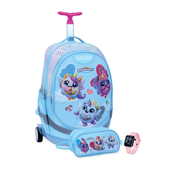 תיק טרולי וקלמר ריינבוקורן רקע תכלת 3 דמויות